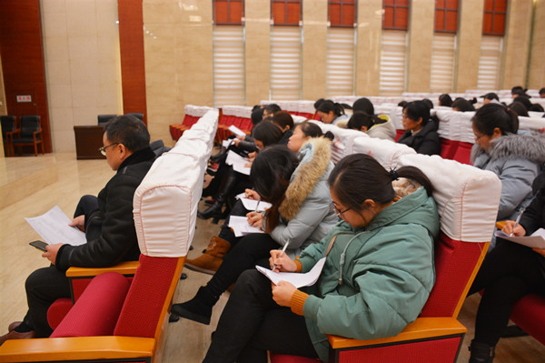 王主任首先作年度考核工作动员讲话,强调此项工作时间紧、任务重,希望大家严格按照相关要求认真、高效完成。接着,王主任详细解读《2018年度考核方案》,对全体老师填写年度考核表进行详尽辅导,逐条逐项给予阐述说明,与会老师均认真聆听并记录。关于教师工作实绩表的填写,王主任还特别强调,所有人员在上交时必须提供真实有效的佐证材料。最后,全体老师填写年度考核测评表,从德、能、勤、绩、廉等方面进行了互测互评。