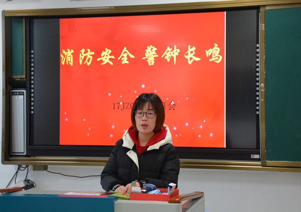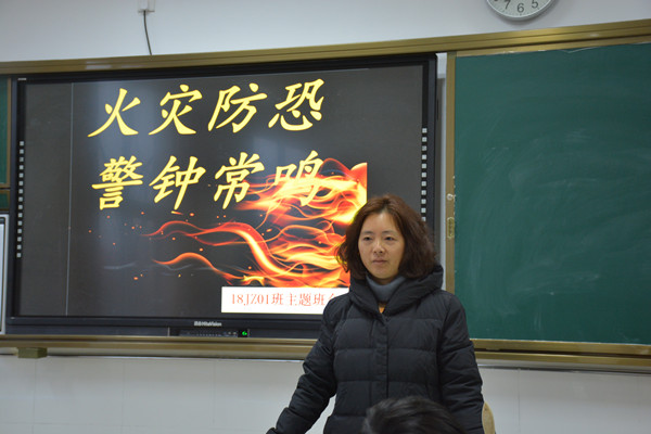 班会课上,班主任利用PPT还原火灾事故现场,通过图示讲解校园防火知识,画面直观形象,内容深入浅出,讲解细致周到。班主任根据学生的实际情况,从发生在学生身边的典型事故入手,从事故中吸取血的教训,要求同学们提高防火意识和技能,做到“三懂”“三会”,即懂得火灾的危险性,懂得火灾形成的原理,懂得火灾预防;学会灾情处理方法,学会使用灭火器扑灭小火,学会火灾自护自救的方法。班主任要求学生时刻保持警惕,及时发现隐患,做到防患于未然,敲响安全事故警钟。