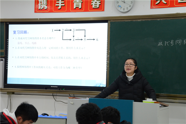1月4日上午第三课,建工系缪晨烨老师在17TZ01教室开设了一堂《双代号网络图绘制规则》为教学内容的公开课。建工系朱敏敏、张慧琴、王国华、朱洪兵、王小丹、孔佳宁、李建梅、张松林、顾庆娟、黄其中等老师参加了本次听课及评课活动。