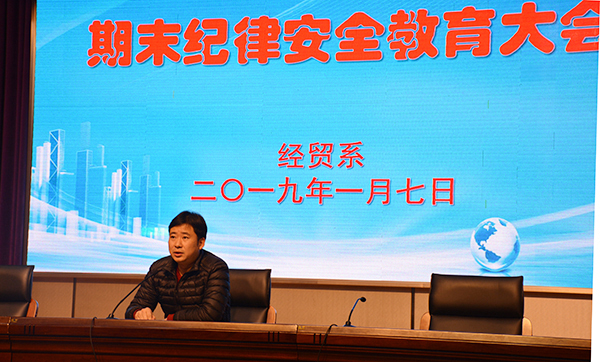 为深刻贯彻和落实学校相关会议精神,进一步推进期末各项工作有序、有效地开展。1月7日下午3:30,在文苑楼报告厅召开了经贸系期末纪律安全教育大会。本次会议由经贸系德育副主任周晟主持,全体班主任、学生共同参与。