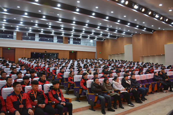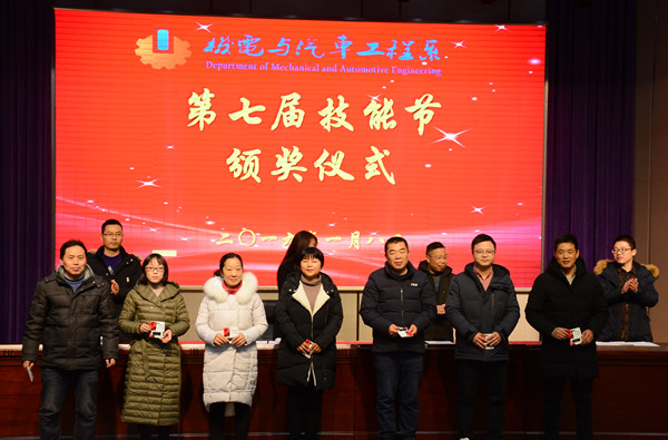 2019年1月8日下午,机电系校第七届技能节颁奖仪式在文苑楼报告厅隆重举行,机电系主任吴樱樱、黄引、叶海伟、李菲飞出席颁奖仪式,15、16、17级学生和18级学生及获奖教师代表参加活动。李菲飞副主任主持颁奖仪式。
