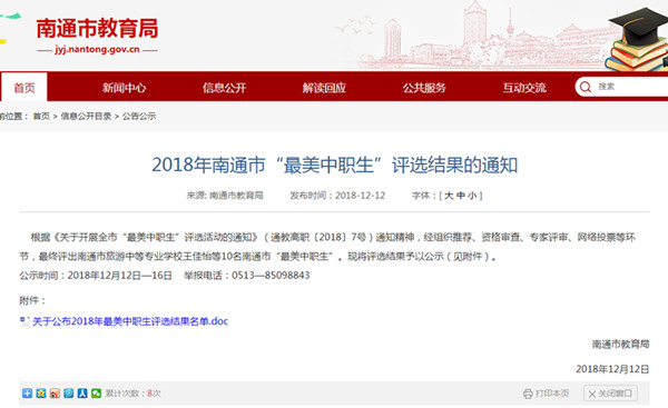 近日,从南通市教育局传来喜讯:我校财贸系16YZ05班易书安同学获评2018年南通市“最美中职生”。2018年10月,南通市教育局、人社局面向全市中等职业(技工)学校开展“最美中职生”评选活动,经组织推荐、资格审查、专家评审、网络投票等环节,最终有10名同学获评南通市“最美中职生”。 书香点墨,静好姝然 ——记南通市“最美中职生”易书安 易书安,财贸系16YZ05班学生,担任16YZ05班学习委员、宿舍舍长。易书安同学思想上积极要求进步,性格乐观开朗,她对自己要求严格,每件事都力求完美。 书山学海,锲而不舍 学习上她对知识的追求无比执着,对口单招的学习无疑是辛苦的,但她坚信“宝剑锋从磨砺出,梅花香自苦寒来”,每天最早到教室的几个人中总会有她的身影,课间在座位上蹙眉思考的也是她。易书安说:“高三更是需要拼命的一年”,今年夏天,宿管阿姨发现好多次晚上十二点半都过了,她们宿舍里洗手间的灯一直亮着很久没关,在老师询问下才知道原来是易书安正借着厕所的灯光学习。就是有着这样的学习态度,所以从进入海门中专至今,她的成绩从未下过班里前5名,更是多次在南通市统考中位列全市前三甲,这样的成绩值得骄傲,而且易书安同学身为班级的学习委员不仅仅只满足于自己的成绩突出,更是不遗余力的带动了周围一片同学乃至整个班级的学习状态。 为得群芳吐香,甘为蜂者 虽然她对自己要求无比严格,但是对同学却是柔如春风,部分同学的学习基础不扎实,导致课堂效率低,易书安同学经常在自习或班会课的时候,充当小老师,在黑板前讲解对她来说早就掌握的各种基础题,课间有同学有问题请教,易书安也会放弃休息时间为同学答疑,有些同学一次不懂反复的问,易书安同学也不会不耐烦,而是一遍又一遍的教,甚至还用不同的方法教,只为了让同学听得更容易理解。 对同学的好不仅仅是在学习上,生活上易书安也能处处为他人着想,急人之所急。一次舍友张培培因雨天地面湿滑摔倒导致右手骨折,生活上的不便让张培培失去了学习的动力,再加上因病落下的课程让这个学生着急的哭了,易书安主动肩负起照顾她的责任,生活上从洗脸刷牙到穿衣打饭,都会在张培培身边帮忙,学习上从新知讲解到错题答疑,都会讲到她理解为止,一个阶段之后张培培的成绩不但没有下滑,反而有了一定的提高。 类似的情况有很多,所以很多优秀评比中,她很能得到同学们的认可。 书慧芬芳,点染最青春 易书安学习的是艺术专业,绘画练习往往一坐就是半日,她是最能坐得住的学生之一,因为自小练习的书法也常常是大半日的坐着站着,书法也因此成为她生活中不可或缺的艺术,对于书法,她有着自己的见解和体悟,从小就获得了全国各地各级的奖项,并在小学六年级时就获得了软笔书法的最高等级十级,她坚信书法是一种修养,一种文化,一种底蕴,更是一种传承。班级文化氛围布置中少不了她清新飘逸,秀丽硕长的字迹。她还多次代表班级、代表系部、代表学校参加各级各类比赛,南通市“领航杯”学生电脑作品制作一等奖,南通市技能大赛平面设计类二等奖,海门诗联书法大赛青少年组别一等奖、“你好,新时代”书法大赛一等奖……都是她在比赛中获得的傲人成绩。 在校期间她每学期都能获得“三好学生”的称号,并多次获评“优秀共青团员”、“技能专长榜样学生”、“感恩慈善榜样学生”等称号。2018年12月,易书安参与了南通市“最美中职生”的评选并获得了这个殊荣。得知此消息后易书安说:“这个荣誉是学校和同学给的,要守住这个荣誉,我还应该做的更好”。(沈怡婷)