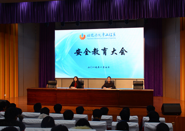 为了贯彻落实学校安全工作会议精神,进一步加强学生安全意识,消除安全隐患,全面普及安全常识,1月7日下午13点,机电系在文苑楼报告厅召开期末安全教育大会,会议由机电系副主任李菲飞主持,吴樱樱主任发表重要讲话。