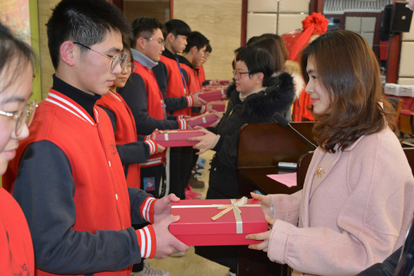 送祝福,祈愿金榜题名。在同学们共唱《我相信》以后,19届全体班主任为高三学子送上了一份特别的鼓励——文昌笔小挂件。木质文昌笔,“金榜题名”小字刻其上,班主任的“小心思”,温馨而甜蜜。班主任团队以此来祝福,也以此来表达在未来的100天,共沐风雨,共同进退的决心。