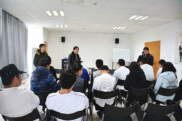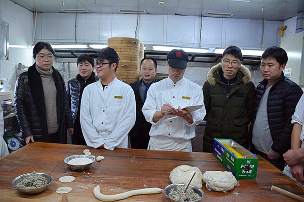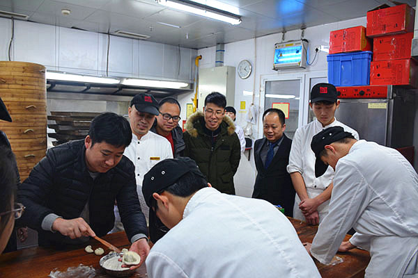 为加强与企业的沟通联系,获悉企业对人才的需求及质量要求,规范顶岗实习管理,更好地了解掌握学生的实习状况和思想动态。1月14日13:00,经贸系主任施红华、副主任陈忠平、周晟以及班主任沈杰等一行,前往海门东恒盛国际大酒店与在酒店顶岗实习的16级中餐烹饪专业的17名学生进行了面对面交流。