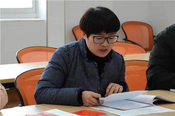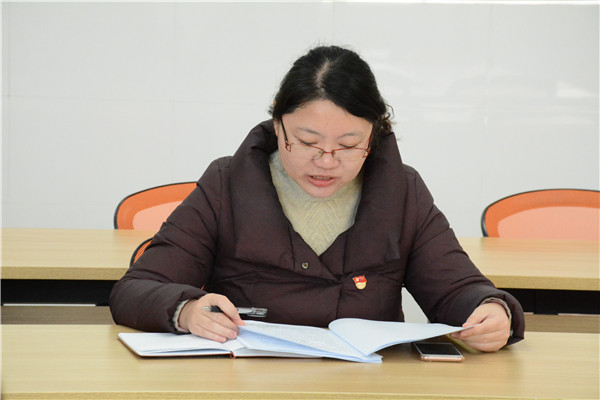 首先,支部书记朱敏敏作了2018年度述职报告,她对支部党员同志一直以来的积极支持表示感谢,她从“师德师风、教育教学、管理工作”三个方面,总结了个人取得的成绩,以及支部建设、系部管理方面取得的成绩,一学期以来,在校党委的关心支持下,在全体同志的共同努力下,建工系较好地完成了系部各相工作。同时,朱敏敏也深刻剖析了工作中的不足和今后的努力方向。