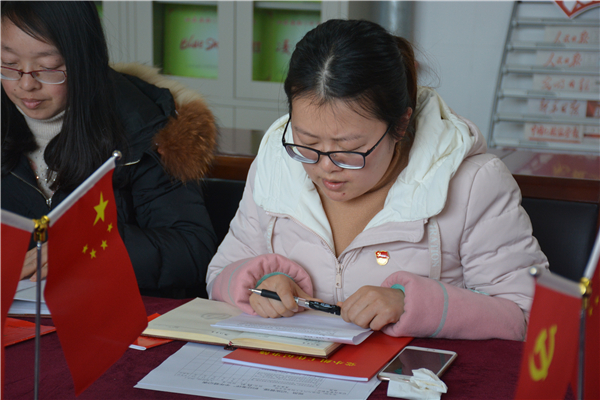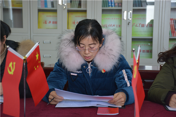 第一项议程,吴书记结合支部工作进行2018年度述职,她从支部工作执行力、履行党建责任情况、恪守党章党纪等方面,总结了一年来支部在党建上取得的成果以及不足,并希望支部全体党员能够不断贯彻落实党的十九大精神,充分发挥党员教师在传承红色基因中的先锋模范作用,努力上好课,搞好教研活动,严格遵守学校规章制度,做教育教学的模范、榜样,引导广大教师立德树人、行为示范。