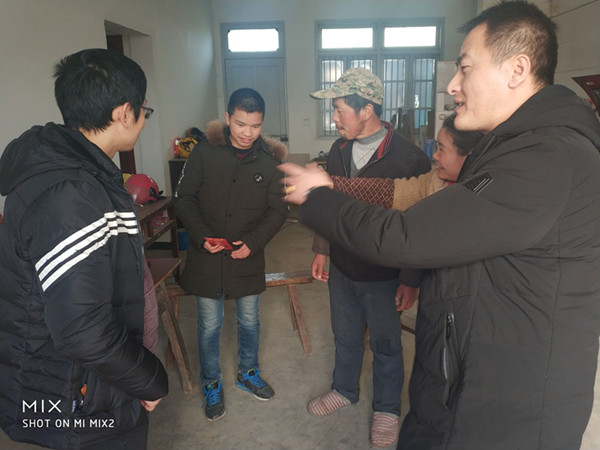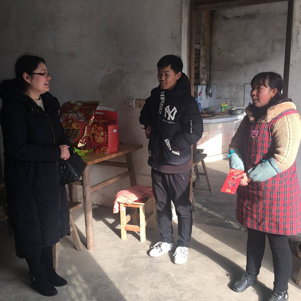 1月25日下午,建工系党支部朱敏敏、张永辉、邹熊冰、冯慧卉、朱洪兵等老师奔赴三厂、三星、四甲、悦来等六名贫困学生家庭送温暖慰问,从物质和精神上关心贫困学生,献爱心、送温暖。