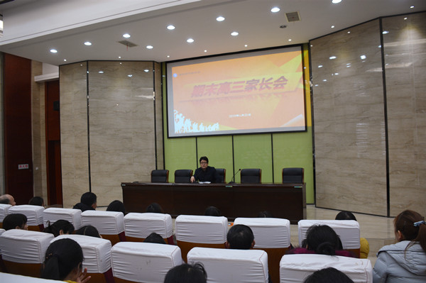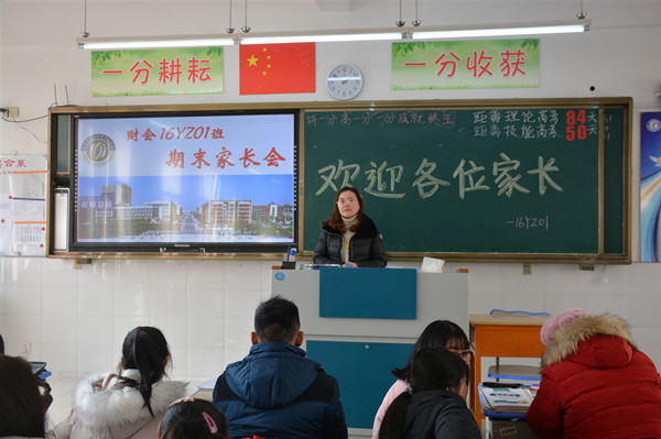 王主任首先向与会家长介绍了今年对口单招高考形势,还有本届高三高考目标和系部复习迎考策略及措施,接着又具体通报了刚刚结束的高三期末考试情况。在这次期末考试中,财贸高三各班取得了令人满意的成绩,王主任就此希望各位家长看清形势、增强信心,在寒假里要进一步加强对孩子的关爱和鼓励,除了要做合格的“后勤保障部长”,还要配合班主任做好学生思想工作,和学校“拧成一股绳”,督促他们继续努力,争取在最后高考中取得更加优异的成绩,帮助孩子顺利实现“大学梦”。