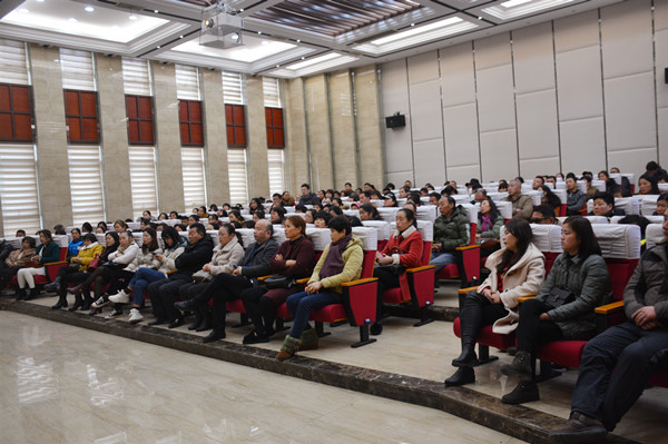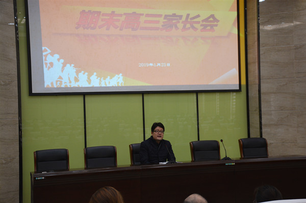 1月25日下午1:20,财贸系在謇公楼名匠报告厅召开了16级高三学生家长会,王飞主任主持会议并主讲。
