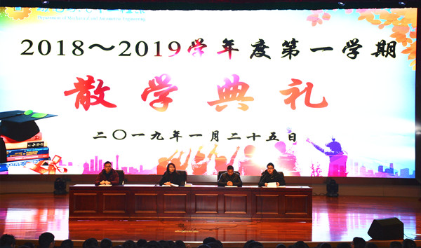一路欢歌,一路笑语,一路成长,一路收获!2019年1月25日9点30分,机电系在謇公湖科教大会堂隆重举行2018—2019学年第一学期散学典礼,收获硕果,展望未来。机电系全体学生和班主任参加会议,会议在全场嘹亮的国歌声中拉开序幕。