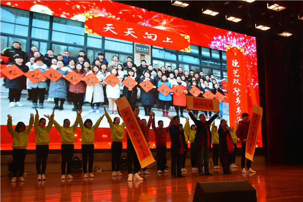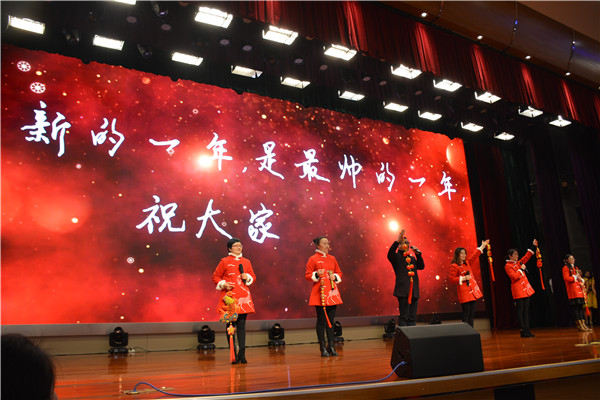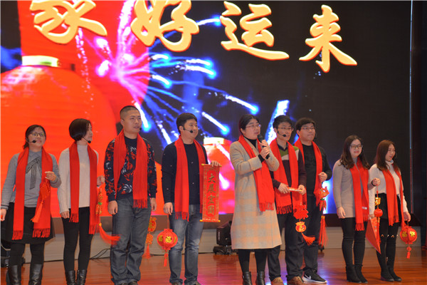 首先是新春送祝福环节,在主持人陆晓曦主任的主持下,由九大行政块精心准备的节目依次亮相,将原本单一的祝福话语,凭借内容和形式等方面的深度挖掘与精彩演绎,在抒发爱校情怀、展示进取之心的同时,既凸显了团队力量,又彰显了集体的凝聚力和战斗力。一个个节目构思新颖、生动活泼,让新学期的再次出发充满着蓬勃朝气,焕发出无限活力。