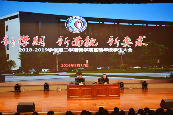 2月17日下午1:30,财贸系在謇公湖科教大会堂召开基础年级学生大会,大会由施黎华副主任主持。