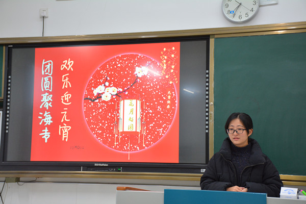为传承中国的传统文化,让学生感受中华文化的魅力,充分了解中国传统节日元宵节的渊源。在新年开学伊始,2月18日上午的第一节课,经贸系各班隆重举行了“团圆聚海专,欢乐迎元宵”的主题班会。