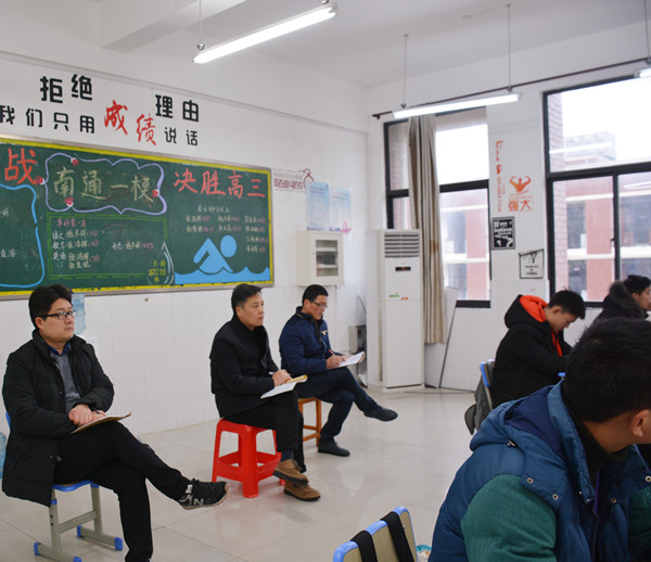 上午第一课前,周桂岐副校长一行就对謇公楼各楼层进行了仔细巡查,财贸系各年级各班值班教师均能恪守职责,认真在岗值班,早读秩序井然,读书氛围浓郁。上午第一课任课教师或班主任均能做到提前候课,准时上课。随后,施晓东主任以及钱玉强副主任还进行了“推门听课”,深入高三课堂调研,检查教师上课、备课情况,了解学生上课精神状态。课后,他们还与上课教师进行了交流,给予充分肯定的同时也提出了指导性意见。此外,根据教学工作部通知安排,财贸系主任室成员也进行了“推门听课”,各自随机听取了一节课,并进行了点评。