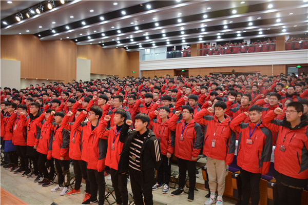 最后,全体学生在17TD03班滕俊杰同学的领誓下,进行了庄严宣誓,“爱祖国、有梦想;爱学习、有专长;爱劳动、图自强;讲文明,重修养;遵法纪、守规章;辨美丑、立形象;强体魄、保健康;树自信、勇担当”,铿锵的誓言,代表了建工学子坚定的信念与决心。