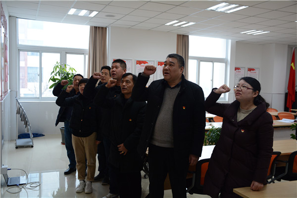 首先在支部书记朱敏敏的带领下,全体党员郑重举起右手,面对着鲜艳的党旗,重温了入党誓词。“我志愿加入中国共产党,拥护党的纲领,遵守党的章程……”一声声坚定的誓言,一句句肯定的承诺,回响在会议室,也深深烙印在他们心中,表达了全体党员将不忘初心,牢记使命,永跟党走的决心。