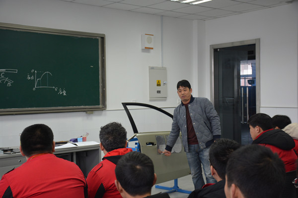 上午第二课,市教育局领导陈小军在教学工作部副主任钱玉强、机电系副主任黄引、叶海伟及相关教师陪同下深入机电系课堂,随堂听取了宋振华老师的《车身修复》一课。
