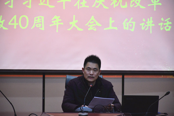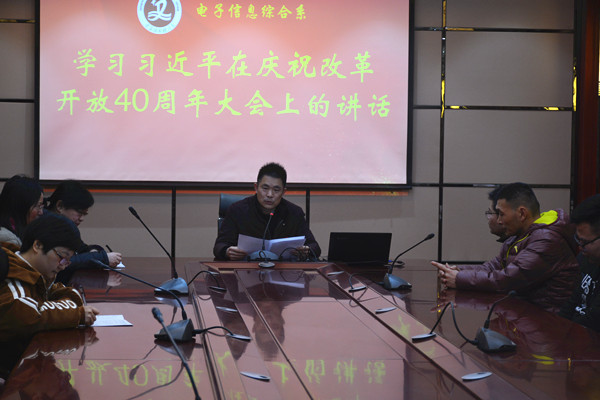 2月25日上午,电信系教师在顾辉副主任的带领下齐聚謇翁楼318会议室,专题学习了习近平总书记在庆祝改革开放四十周年大会上的重要讲话,并就学习宣传贯彻讲话精神做了安排部署。