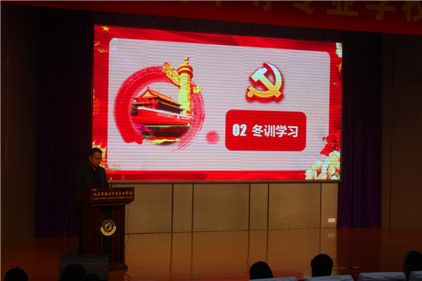 3月1日下午两点三十分,海门中专党委在文苑楼报告厅召开2019年第二次党员大会。学校党委班子成员和全体党员出席大会,党委委员、党群工作部主任洪龚明主持了大会。 大会共有四项议程。 第一项议程是观看学习《我的信仰不平凡》、《“信”“心”相印》微视频。信仰,不分年龄、不分时代、不分领域。微视频中几代共产党人秉持共同的信仰,在革命战争年代、在建设新中国、在改革开放经济建设中,用一生去践行自己的信仰,坚守自己的精神家园。生活在和平年代的我们,固然无需再用悲壮来坚守,但是我们还要用这个时代所需要的方式再坚守,这种坚守就是要把信仰落实在点点小事上。第二个微视频通过展示总书记和普通百姓之间的传统书信往来,让我们感到总书记的关怀无微不至,无处不在,更加激发起我们干事创业的精神动力。对于我校党员教师而言,我们要做的,是坚守自己的岗位,注重师风师德,积极学习,勇于创新,为学生服务、为学校发展贡献力量。越是坚守,信仰越是深入骨髓,它终将成为我们不断前进的旗帜,成为我们工作不竭的动力。 会议的第二项议程是组织冬训学习。先由洪龚明同志带领全体党员学习习近平主席提出的关于奋斗的金句。习主席的语言平实、通俗,但平实中蕴含着大智慧、通俗中揭示出大道理,给人一种透彻、直指人心的力量。立鸿鹄志,做奋斗者。我们要在奋斗中释放激情、追逐理想,在艰苦奋斗中净化灵魂、磨砺意志、坚定信念。冬训学习的第二个内容是由党委委员、副校长茅一娟同志带领大家学习《习近平新时代中国特色社会主义思想是党和国家必须长期坚持的指导思想》。全体党员认真倾听。思想引领行为,在习近平新时代中国特色社会主义思想引领下,大家万众一心,必将会开创我校更好发展局面。 会议的第三个议程是各支部向党委递交党建与党风廉政建设责任状。签了责任状,莫忘责任心。责任状不仅要签在纸上,更要签在心中。各支部应该要时刻铭记责任,在支部书记们的带领下,以强烈的责任心和事业心去落实工作,让“责任”落地、生根、发芽,壮大,让责任之树枝繁叶茂、果实累累! 会议的最后一项议程是由校党委书记宋健同志向全体党员解读《2019年党建工作思路》。宋书记指出,2019年我校党委将布置具体任务、完善措施,以“忠诚之心、担当之举、干净之行”推动党建高质量发展,为学校成功晋级全省“领航计划50强”提供强有力的组织保证和政治保证。 上下同欲者胜,风雨同舟者兴。全体职教人以新思想定向领航,真正担负起职教重任,不忘初心、牢记使命、干字当头、追梦奔跑,在推动学校高质量发展、高品质提升的进程中,站得更高、望得更远、走得更实、做得更好!(姜彦辰)