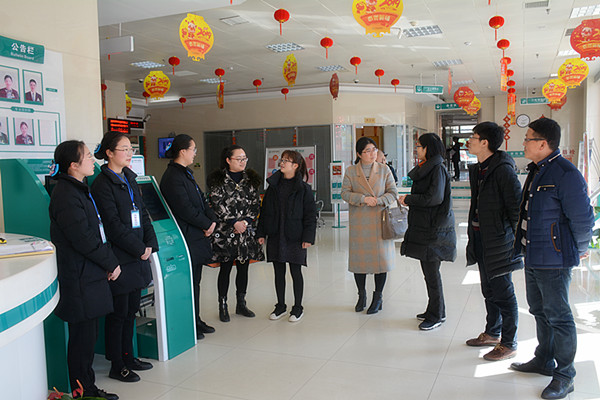 为充分了解15级会计专业学生跟岗实习学习生活情况,及时了解实习动态,保证实习质量。3月7日下午,教务处副主任钱玉强、经贸系主任施红华、副主任陈忠平、周晟及15级班主任前往农业银行进行跟岗实习回访。