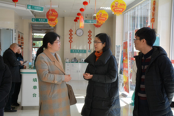 施红华一行在农业银行综合部主任叶敏的带领下,与跟岗实习实习的学生进行了交流,对每位同学的生活、工作和学习情况进行详细了解,并叮嘱学生牢记实习纪律,服从管理,认真学习,把理论知识与实践操作相结合,学以致用,力争出色完成实习任务,为将来走向工作岗位打好基础。走访人员还与银行相关管理人员进行沟通,银行各部门分别从岗位安排、工作表现、思想状况等方面对每个实习生进行了详细介绍,充分肯定了每个学生的表现。