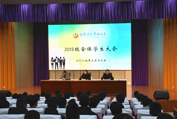 为进一步加强学生管理,提高思想认识,提升综合素养,促进良好班风学风的形成,3月12日下午13:20分,机电系在文苑楼报告厅召开2018级全体学生大会。机电系副主任李菲飞主持会议,机电系主任吴樱樱、副主任黄引出席会议。