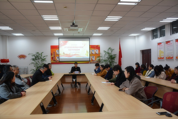 为深入学习贯彻习近平总书记在庆祝改革开放40周年大会上的讲话精神,落实立德树人的根本任务,3月15日上午9:20分,经贸系组织全体教师在书苑209集中学习了习近平总书记的重要讲话内容,会议由经贸系党支部书记陈忠平主持。