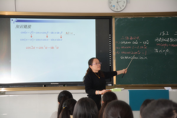 3月18日第六节课,经贸系黄磊鑫老师在17MD01班开设了一堂题为《二倍角公式》的数学公开课。本节课不仅全体数学组成员全员参与,还吸引了很多非数学专业的教师也纷纷坐来听课。