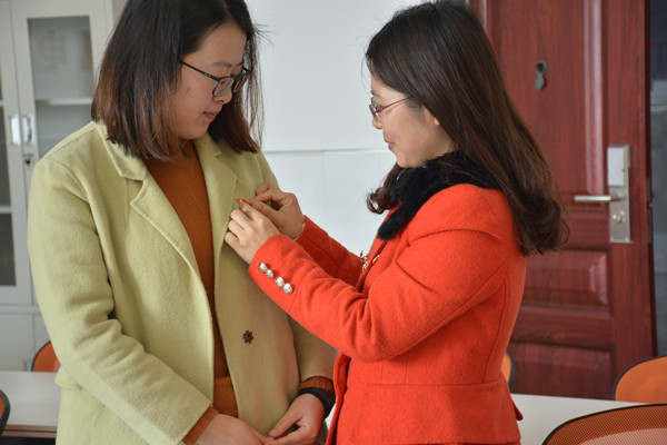第一项议程,组织佩戴党徽活动。支部书记吴樱樱同志给大家说明了党徽的佩戴位置,并号召全体党员要自觉佩戴党徽,让党员身份亮起来,时刻提醒自己是一名共产党员。佩戴党徽上课行动,是一种无声的语言,更是一份鞭策和驱动,党徽在胸,就是要时刻警醒自己注意一言一行,处处做榜样,作示范、起先锋模范带头作用。