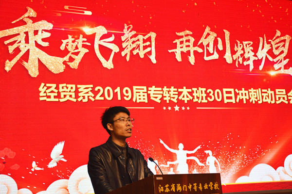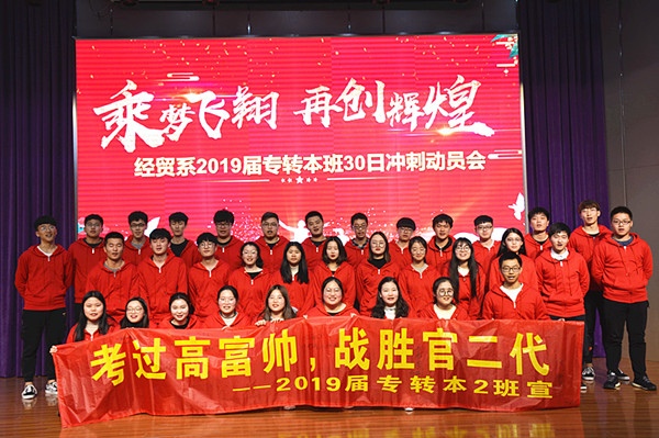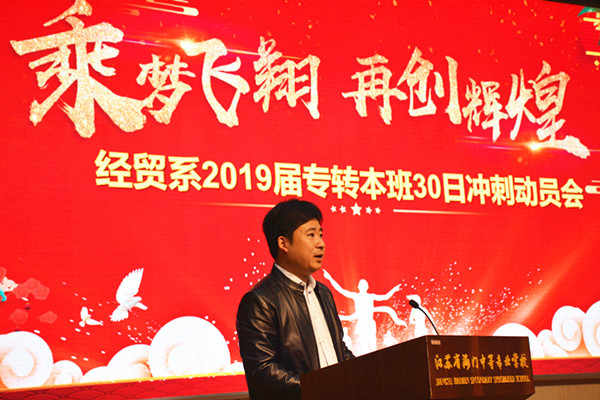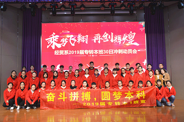 “春风骀荡催新芽,学子精进竞功成。”3月21日上午9:28分,经贸系2019届专转本78名学生和家长代表齐聚文苑报告厅隆重举行2019届专转本30日冲刺动员会。参加动员会的有经贸系主任室成员、2019届专转本全体任课老师,还有前来助力的16、17、18级大专的全体学生。