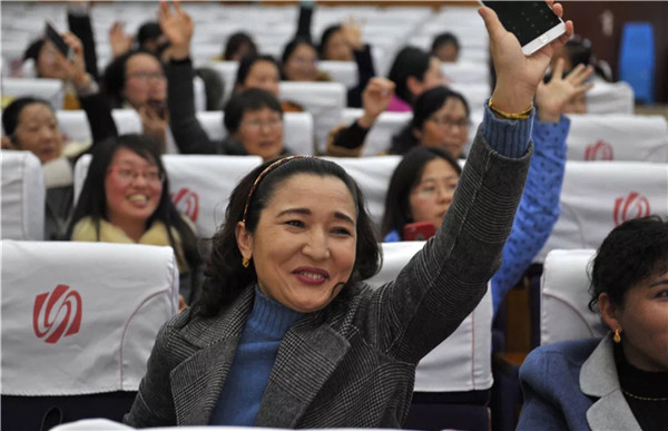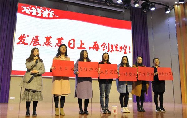 三月的风,让你心情灿烂, 三月的雨,让你快乐绵长。 三月的阳光,让你心头温暖。 三月的祝福,让你生活美满! 2019年3月8日下午,海门中专全体女教职工欢聚在学校B1楼文苑报告厅,举行庆祝“三八”妇女节暨海门中专首届“巾帼节”表彰活动。 学校党委书记宋健代表学校向全体女教职工送上了节日的祝福,并对为学校事业发展作出巨大贡献的女同胞们表示衷心的感谢。整个活动表彰、联欢、抽奖、游戏等环节穿插进行,学校工会精心安排、精彩纷呈、惊喜不断。 “巾帼建功模范”、“党建巾帼先锋”、“十佳女园丁”、“十佳女班主任”、“十佳女耕耘标兵”、“十佳女能工巧匠”、“十佳女服务能手”、“优秀女教职工团队”、“模范党员家庭”、“书香家庭”等十个女性专属奖项表彰了近年来辛勤工作、默默奉献的杰出女教职工典型; 俞菁华老师的《知否知否》,试问卷帘人,却道海棠依旧,知否知否,应是绿肥红廋。 我校对口援教合作单位——新疆克州职业技术学院艾孜孜古丽·库尔班老师的纯正新疆舞《新疆山水美》,婀娜多姿、美轮美奂; 建工系女教职工的热门抖音串烧《最美的花朵》,动感十足、嗨翻全场; 经贸系美女们表演的游戏《心有灵犀猜成语》,趣味表演、祝福满满; 财贸系三位美女老师的小组唱《最美的期待》,人美歌甜、期待美好; 机电系姐妹们表演的游戏《甩掉烦恼》,舞动青春、快乐生活。 抢红包环节由三位男性校级领导逐步推出,现场气氛一轮高过一轮,三组红包每组八位幸运姐妹满心欢喜、幸福满满地登台领取了节日幸运礼品。 整个活动在经贸系陈瑶老师满怀真情演绎的《祝福祖国》歌声中达到了高潮。 女人如花,又比花更娇艳, 女人如水,又比水更柔情。 这个世界因为有了你们而精彩, 这个世界因为有了你们而美丽。 今年是我们学校高质量发展走在前列的关键一年,全体女教职工是这一发展进程中不可或缺的骨干力量,希望你们不断加强政治理论学习、增强自身专业素质、提高教育教学能力,努力使自己成为一名社会认可、学生满意、自身幸福的优秀教师。 祝全校女教职工节日快乐!青春永驻!家庭幸福!(文/肖冰 图/姜宁 殷志祥)