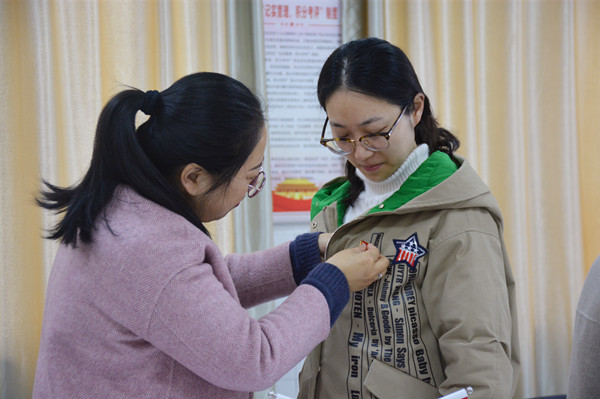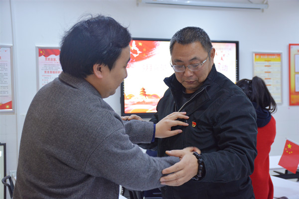 议程一是佩戴党徽活动。首先王飞书记为党员们讲解党徽佩戴要求。他强调,党员佩戴党徽是一项非常严肃的工作,佩戴党徽应当严肃、庄重。党员徽章应佩戴在左胸中间醒目位置,不得使用破损、污损、褪色或不符合制作规定的党员徽章。党徽若与其他纪念徽章同时佩戴,应将党徽置于其他徽章上方。接着,与会支部党员互相之间对党徽佩戴进行了检查和调整。