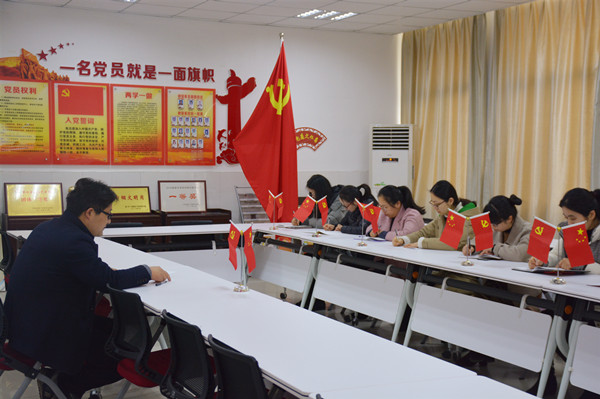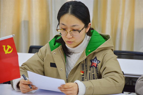 议程三是习近平新思想学习心得交流。宋文彬、毛娉婷两位党员作了现场学习心得交流发言,其他同志也提交了书面交流材料。本次学习心得交流紧紧围绕“初心”展开,同志们纷纷表示,身为一线教师,必须勤勤恳恳耕耘在教育教学第一线,选择忘我,选择无私,应在教师这个平凡的岗位上争创佳绩。