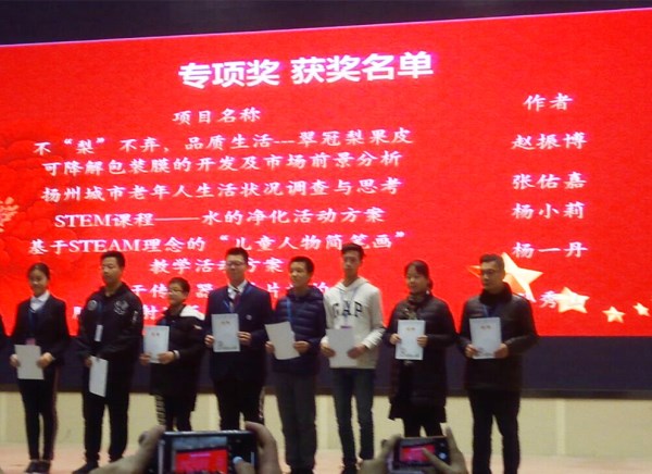 2019年3月22日,我校杨一丹、徐申两位教师参加了第30届江苏省青少年科技创新大赛。本届大赛为期三天,包括开幕式、公开展示、封闭问辩、模拟创业计划路演、科学讨论会、专项奖颁奖等主要活动。共有247个学生创新项目、62个科技辅导员创新项目入选省赛;来自全省的13支代表队的305名学生、62名科技辅导员参加了最终的比拼。 本项比赛由省科协、省教育厅、省科技厅、省发改委、省文明办、省生态环境厅、省体育局、团省委、省妇联、省知识产权局共同主办。面向全市幼儿园、小学、初中、高中、中高职各个学段的师生,为江苏青少年成长成才搭建宽广平台,也为全国青少年科技创新大赛选拔人才。大赛奖项被各重点高校、重点中学提招考试认可,具有很高的含金量,竞争非常激烈。 我校积极响应国家“大众创业,万众创新”的号召,扎实做好学生的创新创业教育,在历年的创新创业大赛中取得了丰硕的成果。在本次比赛中,我校杨一丹老师的科教作品《基于STEAM理念的简笔画科教活动方案》获教师组一等奖;黄卫华、徐申、陆慧老师指导的科技实践作品《浩麦1号在海门地区的产量构成因素分析 》获学生组二等奖;黄峰、陈海滨、顾刚老师指导的科技创新作品《一种吊柜用挂篮》获学生组三等奖;崔志钰、沙云老师指导的科技实践作品《呵护生态家园:海门市农村土壤退化状况调查》获学生组三等奖。同时,在全校师生的支持下,杨一丹老师作品获评“我最喜爱的创新成果”十佳作品专项奖。本次获奖刷新了我校省创新大赛的成绩。 自去年11月起,我校师生就投入了创新大赛的积极备赛中。学校共选送14个作品参加南通市赛,5个作品入围省赛初赛,1个作品入围现场决赛。这一路走来,经历了师生们对于作品的不断打磨,层层改进,师生的创新精神和创新意识得到了质的提升。(徐杨帆)