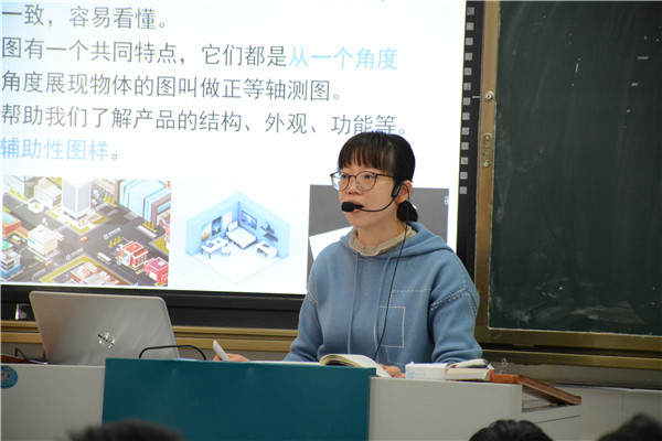 杨海燕老师执教了一堂《正等轴测图》的课,她以生动的现实生活中的效果图导入新课,激发学生的兴趣,通过构建新知、巩固基础、应用实践等环节,让学生扎实掌握正等轴测图的形成、参数、特性、绘制等知识要点,并充分利用蓝墨云班课的信息化手段,有效检测学生的掌握情况,提升课堂效率。