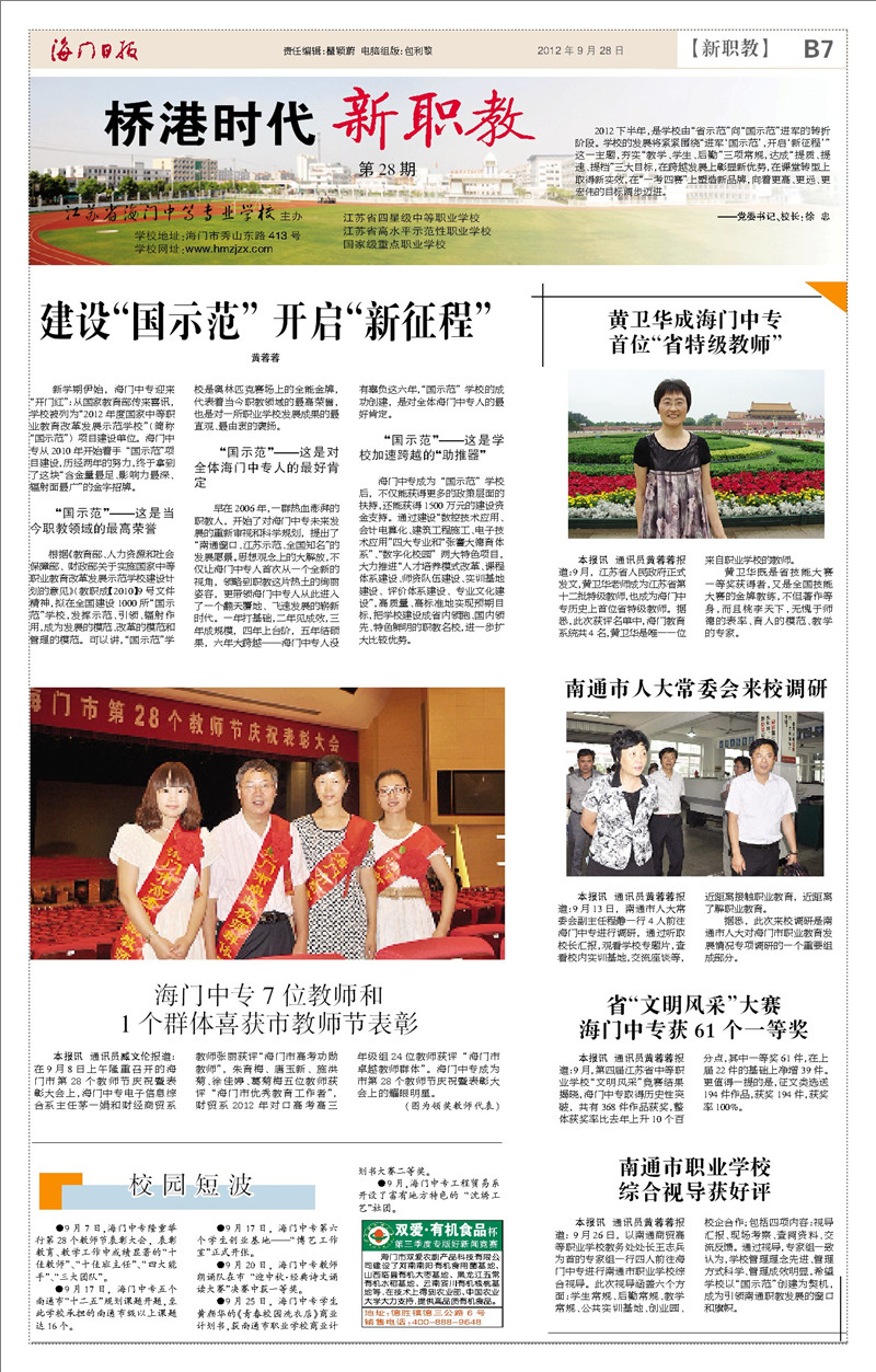 Copyright 2010-2016 江苏省海门中等专业学校版权所有 | 地址:江苏省南通市海门区滨江街道苏州路299号 | 电话:0513-82829208 |