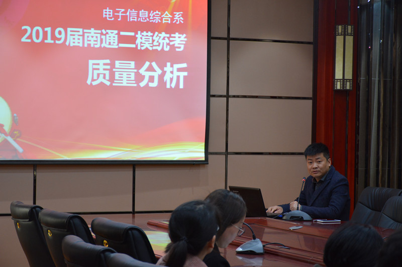 4月1日上午9点20分,电信系在謇翁楼318会议室召开南通市二模考试质量分析会,本次会议由电信系主任江勇主持,全体高三教师参加了本次会议。
