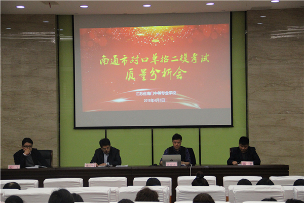 为总结分析南通市对口单招高三二模考试情况,研究部署后阶段教学安排,4月3日下午3点20分,我校在E楼精匠报告厅召开南通市对口单招二模质量分析会。副校长周桂岐、两系部主任室成员及全体高三教师参加了会议,会议由教学工作部主任施晓东主持。 会上,施晓东主任从六个方面对本次考试成绩作了详细解读,分别是南通市二模本科模拟上线数的确定、南通市二模总体情况、我校文化课情况分析、我校专业理论和技能情况分析、我校系部各专业表现、后阶段我们要关注的两个方面,基于数据的有深度的分析使每位教师对本次考试及学生目前的状况有了非常清楚的认识,为下阶段各班级、各科目的复习指明了方向。 最后,周桂岐副校长对前一阶段两系高三老师认真工作以及学生高涨的学习热情和认真的学习态度给予了充分的肯定。对于后阶段备考工作,周校长提出了三点建议:一是精准分析,找准位置,确定努力方向;二是科学规划,制定好复习策略,要回归课本,突出重点,精讲精练;三是关注临界生,加强时间利用效度,补齐短板,提高本科上线人数。 本次质量分析会是一次总结经验的会议,也是一次鼓劲加油的会议。真实的数据、精准的分析,使全体高三教师明确了后阶段的努力方向。接下来的十六天,全体单招人一定会克服干扰,鼓足干劲,全力以赴赢取2019年高考新辉煌。