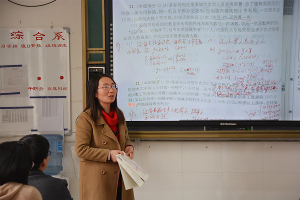 4月3日上午第二节课,钱琴老师在16YZ10班开设了一节高三试卷讲评课。财贸系朱娟副主任、周莉科长,杨金花、汤健以及数学组十多位教师参加了听课、评课活动。