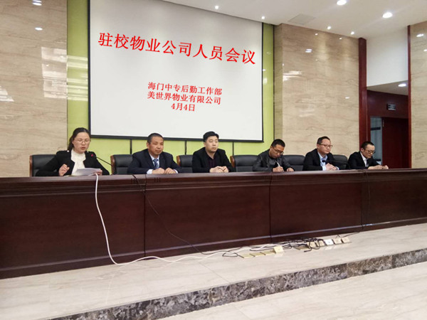4月4日下午,后勤工作部联合驻校物业公司在学校E楼精匠报告厅召开物业公司人员会议。出席会议的有后勤工作部主任袁兵、美世界公司总经理王世春和经理张捷以及驻海门中专物业管理部全体成员,会议由王帅红主持。 因人事调动,美世界物业公司的张捷经理首先宣布由张华新担任海门中专项目经理,王帅红担任项目经理助理,两位新任管理人员分别作了讲话,表明决心,他们表示会在日后的工作中尽职尽责,不忘初心,默默奉献,做学校后勤的守护者。 接着驻校物业公司汇报了开学以来物业服务情况、工作中存在的不足以及下一步努力的方向,并对学校通报物业管理与服务过程中存在的问题作了表态发言,同时表示将严格管理制度,尽快落实整改。 一直以来,我们学校高度重视校园物业管理工作,推行物业管理社会化服务,后勤工作部袁兵主任进一步强调了学校物业管理与服务工作的重要性。他指出,物业服务是后勤安全保障的重要部分,如何进一步提升后勤服务质量和管理水平,提升后勤管理标准化、制度化、规范化,全心全意以提升广大师生满意度为出发点,更好地为学校提供优质服务是关键。他要求驻校物业人员要从责任落实、履约合同、制度执行、日常巡视保洁、提高人员素质等方面下功夫,要时时刻刻把安全放首要位置。 同时袁主任希望物业方面今后要加强与校方沟通,及时反馈问题,进一步强化服务意识,注重细节管理。要做到履责到位,服务到位,巡查到位,维修到位,制度到位、标准执行到位。同时也表示学校今后会加强监管,强化责任落实,切实做到监管、检查、整改工作到位,日常考核评比到位。 最后,袁兵主任代表学校感谢物业公司对学校工作的大力支持,希望学校和物业双方齐心协力,共同营造环境优美,平安整洁的美丽校园。