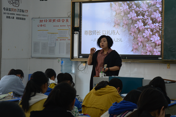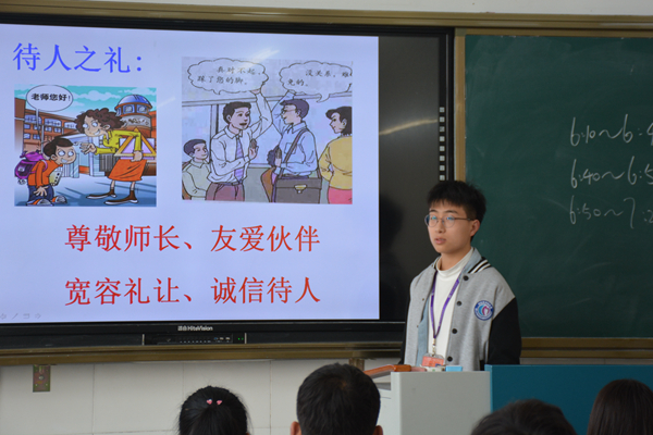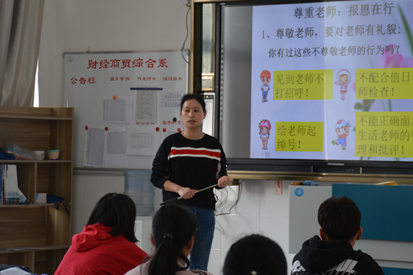 4月8日上午第一节课,财贸系各班积极组织开展了“尊敬师长、以礼待人”主题班会活动。各班活动氛围好,学生参与度高。