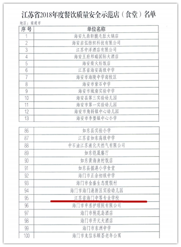 近日,从海门市市场监督管理局获悉,江苏省市场监督管理局公布了2018年度江苏省餐饮质量安全示范街(区)和示范店(食堂)名单,海门中专榜上有名。 我校能够获此殊荣离不开学校领导的大力支持,离不开全体后勤人的辛勤付出。从创建海门示范食堂到南通示范食堂,再到如今的省级餐饮质量安全示范食堂,历时一年之久,从第一食堂到第五食堂再到校企合作的粤港茶餐厅,从每天的日查到周报再到月检,无不倾注了食堂全体员工的辛勤付出。 作为海门市的一所主体职业学校,先进的办学条件,充足的生源,与之相匹配的多样化发展的食堂餐饮是学校高质量全面发展的推动力。一直以来,我校非常注重食品安全管理工作,采用了“五常”、“3e”等先进管理方法。建立了一整套切合我校实际的食品安全管理制度,同时我们定期开展食品宣传培训,坚持信息公开透明,大力推行明厨亮灶工程,严格控制原料采购,经营过程规范管理,全面落实食品安全自查制度。形成了独具特色的示范引领作用,增加了全校师生对食品安全的放心度。 今后,我们一定会以此为契机,珍惜荣誉,加大管理力度,进一步提高食品安全保障水平。(韦彩红)
