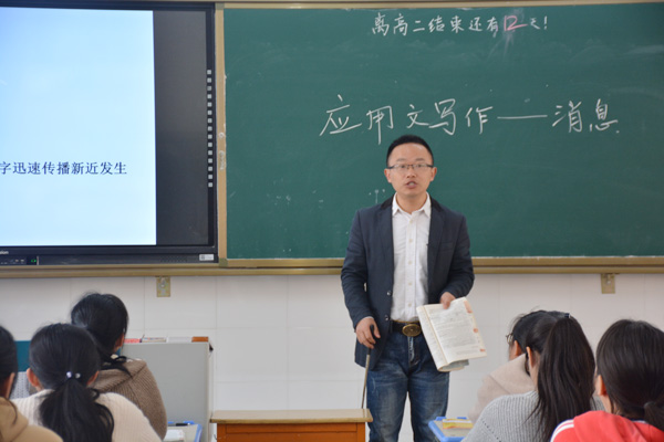 王熙华老师开设的公开课课题是《应用文写作—消息》,王老师由图片导入概念,形象直观,符合学生由形象到抽象的认知规律。通过展示例文,引导学生自主明确文本要求,并联系生活实际,创设真实情境,让学生在生活情境中梳理知识点,从材料中观点提炼,进而指导学生进行写作。