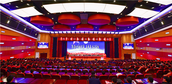 4月13日,“海门市职业教育集团”在海门中专正式揭牌成立。 成立大会在学校謇公湖大会堂举行,南通市教育局副局长姜学勤,海门市人民政府副市长黄静,海门市委教育工委书记、教育体育局党组书记、局长许新海,南通振康焊接机电有限公司董事长汤子康,南通市教育局高等教育与职业教育处副处长李维,江苏省海门中等专业学校校长徐忠主席台就座;集团各理事、联席会议各成员单位代表、全市各区镇分管领导、全市各初中校长、海门中专师生代表共730余人参加了成立大会。