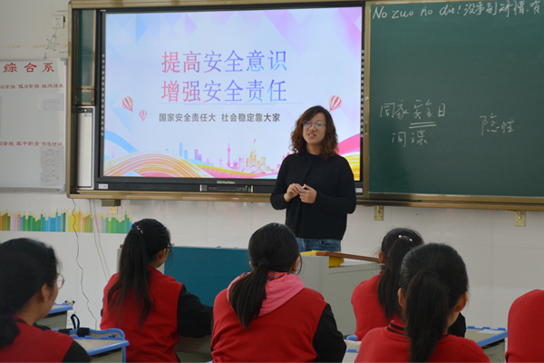 为积极响应习近平总书记提出的坚持“国家安全观”的重要讲话精神,增强广大学生的安全意识,4月15日上午第一课,财贸系组织基础年级各班开展了“提高安全意识、增强安全责任”的主题班会活动。