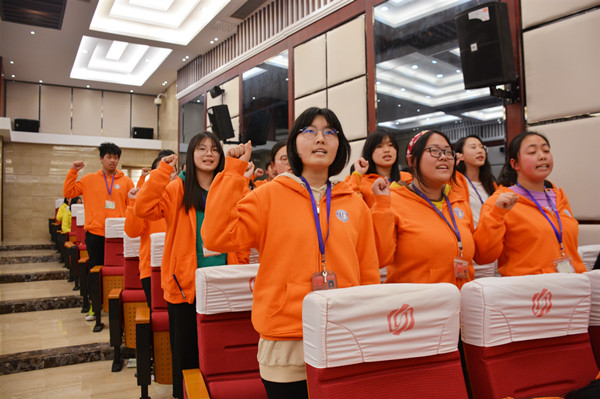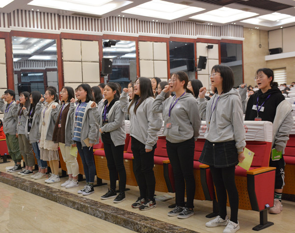 最后,各班依次起立进行了高考宣誓,铮铮誓言响彻全场,充分展示出2019届财贸系高三学子高考必胜的信心。