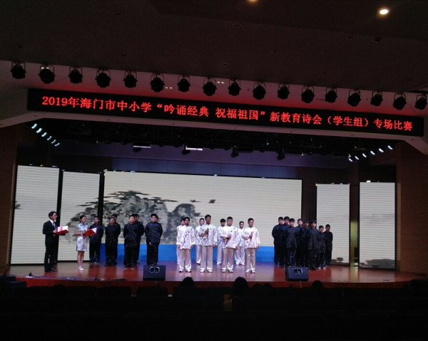 4月17日,由海门市语言文字工作委员会、海门市教育体育局、海门市新教育培训中心组织的2019年海门市新教育阅读节——中小学“吟诵经典 祝福祖国”新教育诗会(学生组)在东洲小学四楼展演厅拉开帷幕,全市中小学共有18个节目参加了本次展演。经过前期的精心准备,我校信息系的《爱国之路》和《诗经》表演组,机电系的《诗风流韵》表演组,把努力的成果搬上了舞台。 信息系的《爱国之路》通过朗诵的形式,纪念新中国成立70周年,表达了同学们的爱国之心,强国之愿,报国之志。 信息系的同学通过《诗经》中的优美诗句,让大家拾起美好的记忆,并感受了《诗经》的优雅。 机电系的配乐诗歌朗诵《诗风流韵》,荡气回肠,用令人陶醉的音乐,让人咀嚼出中华文化的韵致。 新教育阅读节,为我们搭建了一个展示自我的平台。心中有诗,生活才有诗意。做一个读书人,是我们海专人的共同目标,愿我们能在书中找到最美的风景!(徐杨帆)