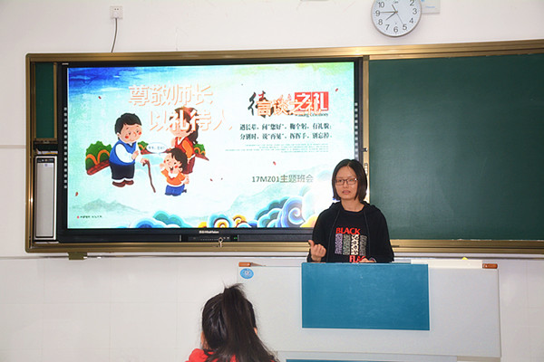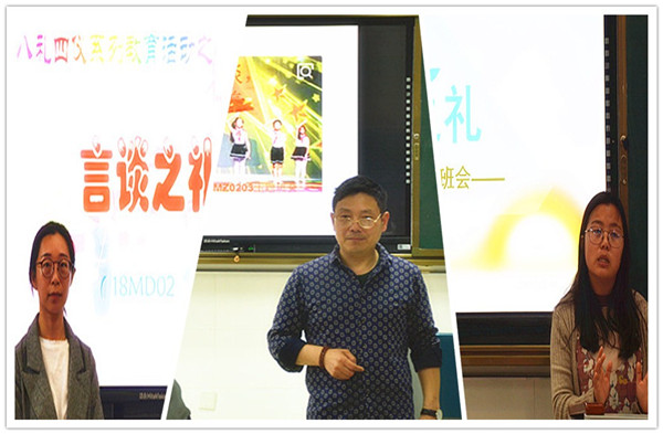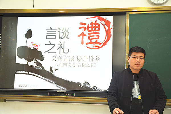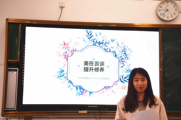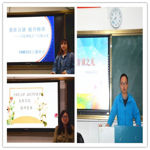 中国自古以来就是礼仪之邦,文明礼貌是中华民族的优良传统。为了培养学生在日常行为中更好的做到以礼待人,学会尊重别人,经贸系于4月22日第一课开展了“美在言谈,提升修养”--- 八礼四仪之“言谈之礼”的主题班会活动。