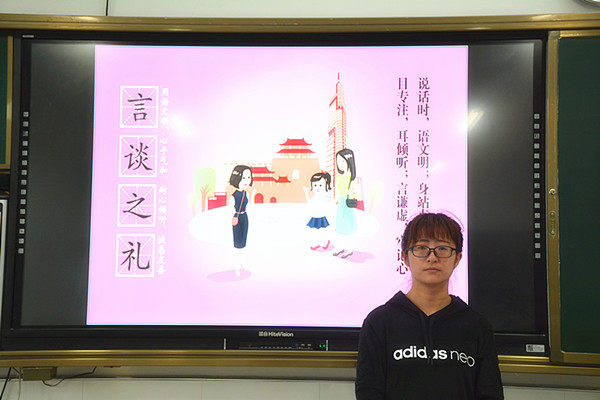 活动中,各班主任老师精心准备了文明礼仪的视频资料,校园礼仪VCR等,学生们通过观看和分组讨论的形式懂得讲文明有礼貌是做人的基本品德,是社会交往的需要,是尊重他人的表现。每个人都应该以礼待人,学会尊重他人,做一个有礼貌有修养的新时代公民。大家还以校园中是否出现不文明现象展开了积极的讨论,进一步了解了该怎样做到“言之有礼”,在实践中感受言谈的艺术,让言谈之礼真正深入到人心,落实到行动,深入到生活的点点滴滴。